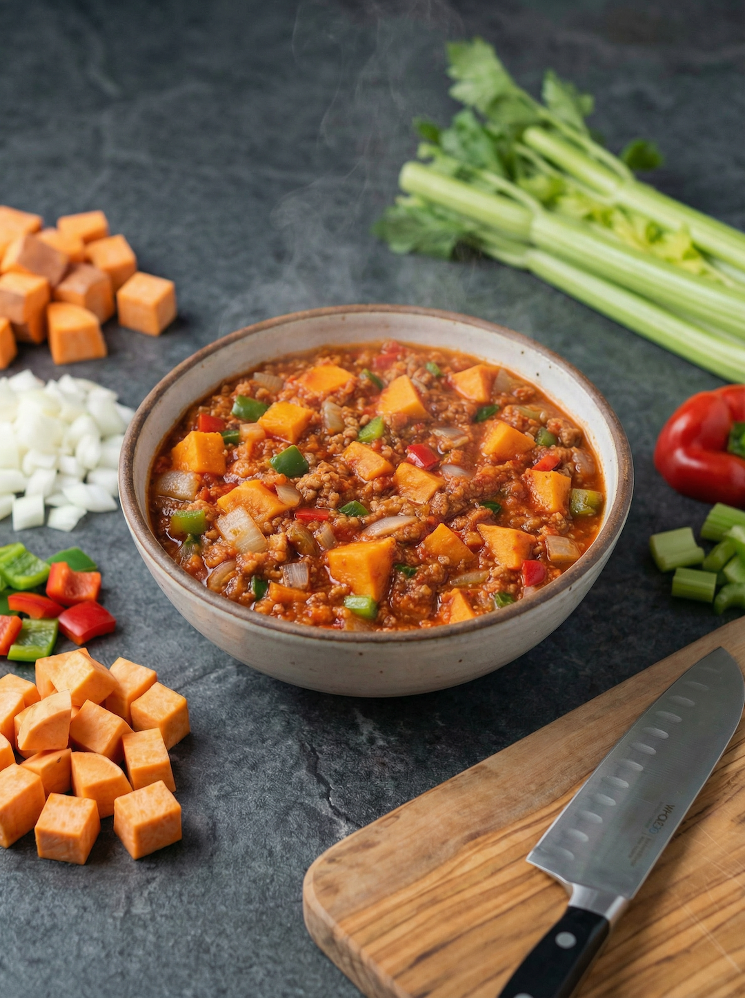 All Natural Antibiotic-Free Ground Turkey, Tomato Puree, Sweet Potatoes, Water, Onions, Celery, Green Bell Peppers, Red Bell Peppers, Extra Virgin Olive Oil, Garlic, Chicken Stock Concentrate, Sea Salt, Cumin, Spices, Garlic Powder, Ancho Chili Powder, Chipotle Chili Powder.